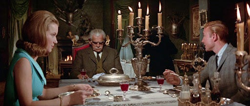 During dinner, everyone glosses over a horrendous scream that rings out through the house. I don’t really blame them, because it’s a meal so awkward I’d scream too. Thankfully the butler cuts the tension by passing out.