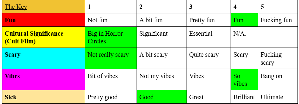“One could have a not-very-scary, super obscure, laugh-a-minute film score 9 points. Equally, a terrifying and immensely exciting film could have no humour or style, be a complete cultural flop, and score 14 points.”