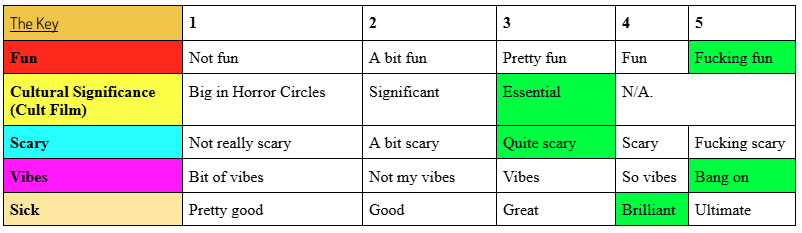 Right, that’s all from me on the first film. I really want to hear your thoughts, especially those regarding Campbell’s performance, the Video Nasty era, and all that jazz.