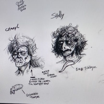 Speaking of stuff I forgot - the forced drawing of the Necronomicon! According to leading man Bruce Campbell, makeup artist Tom Sullivan made the template for this sinister illustration. I saw this exact scene referenced in the aforementioned TV spinoff too, and it had slipped my mind that it was a callback. Love that!